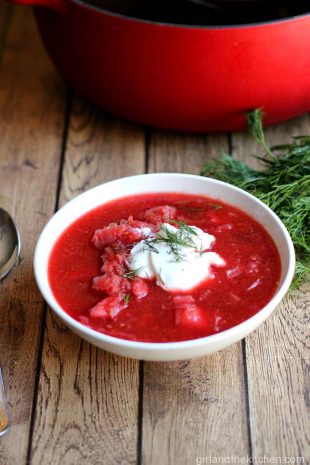 Growing up I despised borsch! Its bright purple color scared me and its ingredients were never my cup of tea. I hated beets and cabbage as a child and considering those are the 2 main ingredients, this little foodie was steering clear of the pot of purple liquid.